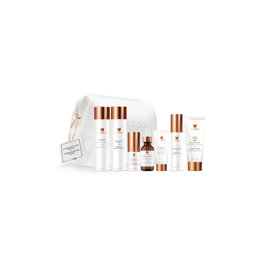 Ce programme anti-âge avancé comprend une routine complète de produits conçus pour cibler les signes avancés du vieillissement, notamment les rides et les ridules plus profondes, l’amincissement de la peau et un teint inégal, tout en protégeant contre les dommages futurs.